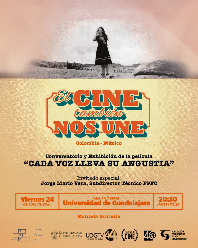 Con esto, esperamos contar con una amplia participación para continuar conversando alrededor del cine en nuestro continente, los retos que supuso filmar en la época y los retos actuales para que estos materiales no queden en el olvido, de manera que extendemos la invitación al lanzamiento de la colección, el conversatorio y la proyección de la película Cada voz lleva su angustia, el próximo 24 de abril a las 8:30 pm, en la sala 3 de la Cineteca de la Universidad de Guadalajara.